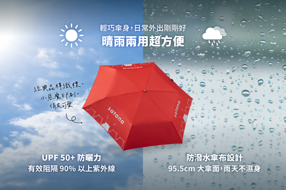 小惡魔極輕量折疊傘 (附手提袋) 品牌紅/亮黑色