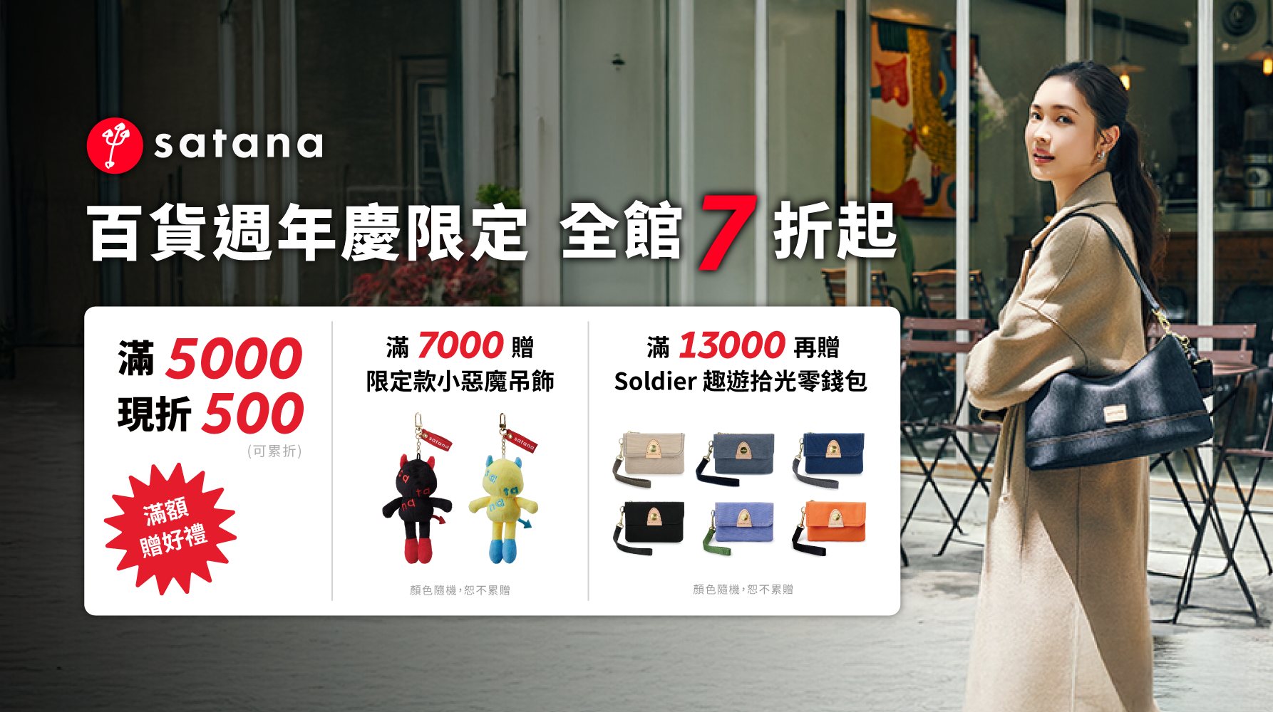 本次更推出百貨限定的獨家特價商品,以全年最優惠的價格入手質感單品,輕鬆展現低調卻不失格調的時尚品味。每間門市限定款式不同,敬請鎖定satana 官方LINE 解鎖更多最新資訊!