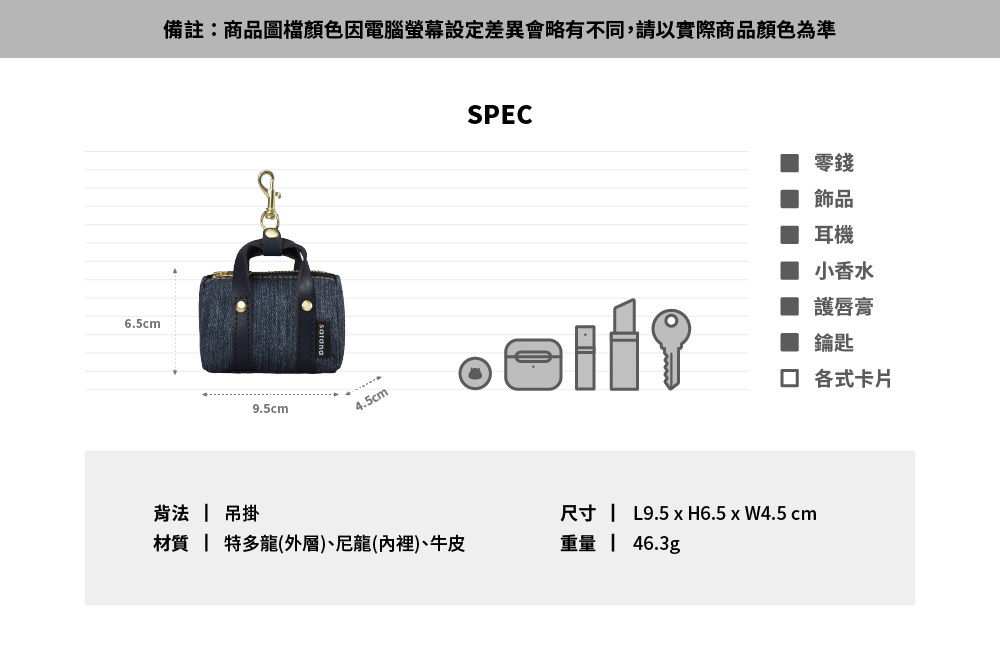 ▪ 精緻吊鉤設計,輕鬆掛於包款或鑰匙圈