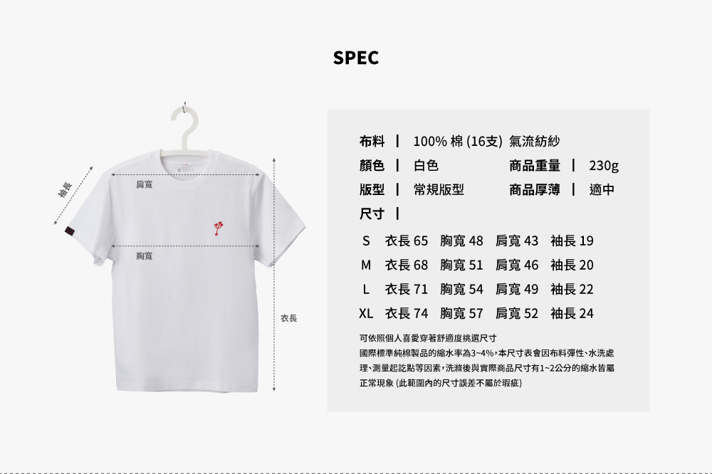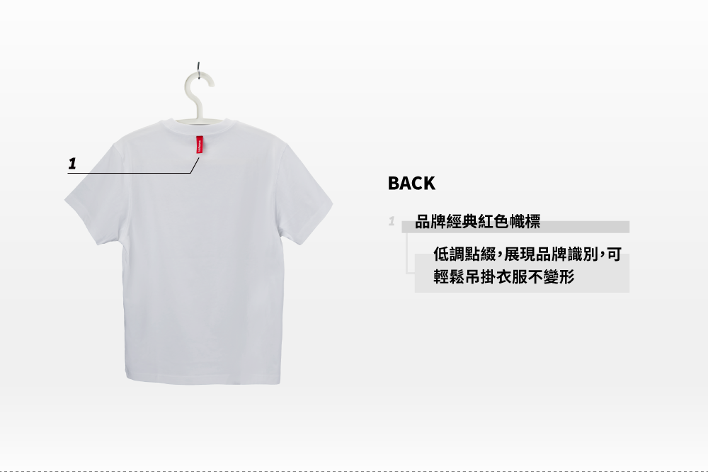 ▪ 領口後方經典紅色織標,可吊掛