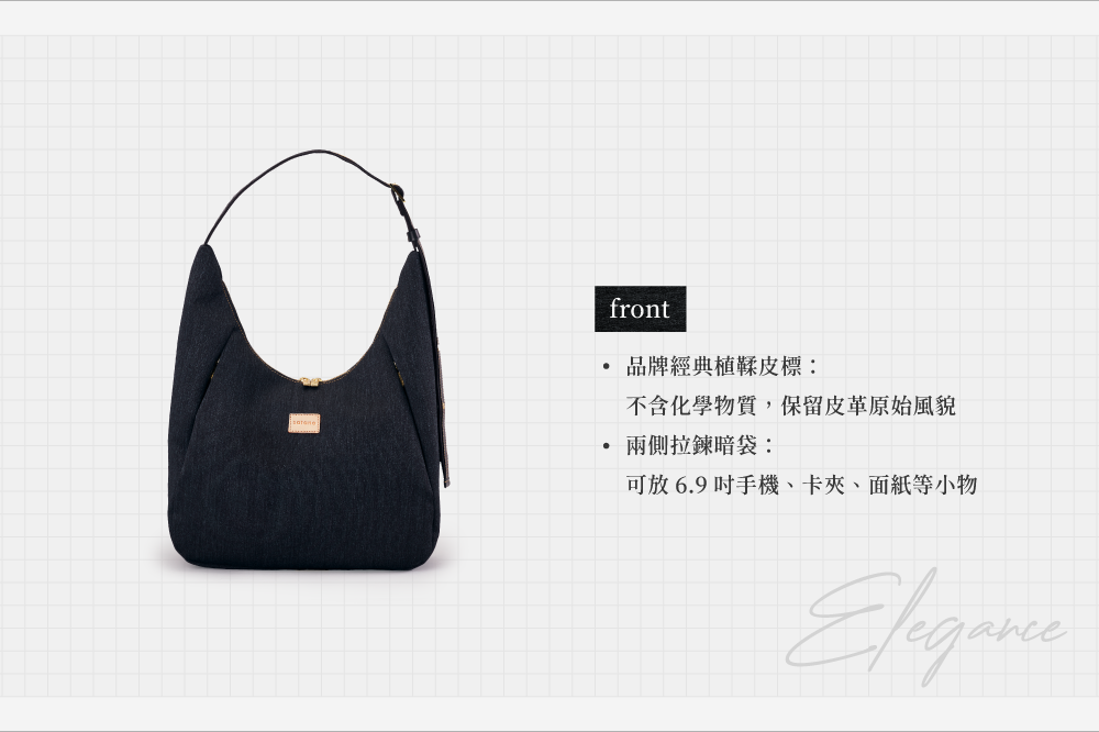 ▪前方左右兩側拉鍊暗袋,可放6.9吋手機