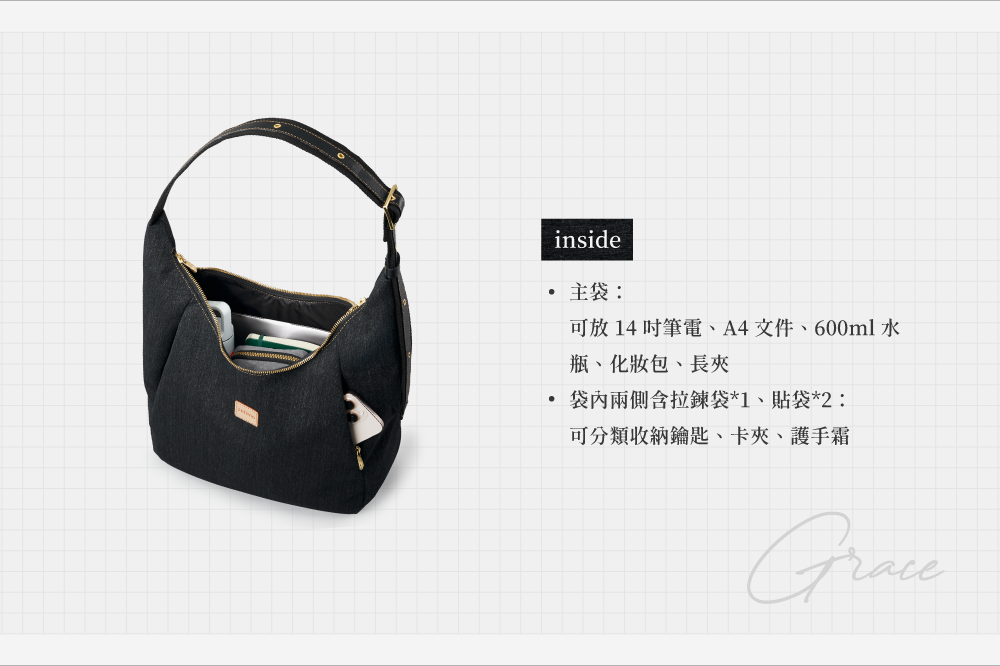 ▪可容納14吋筆電、A4文件、600ml水瓶