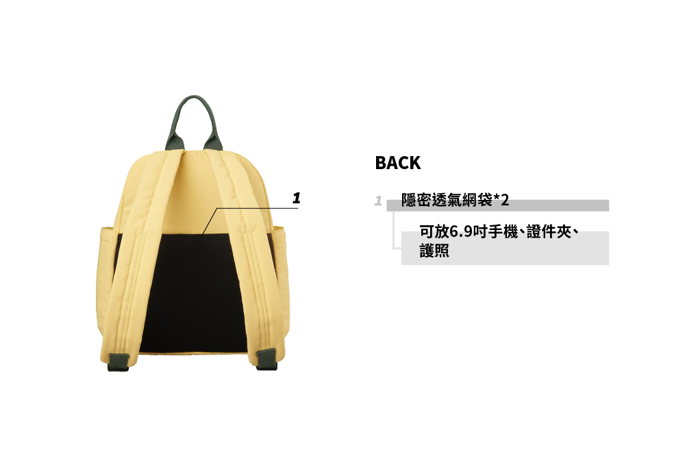 ▪ 後側隱密透氣網袋,可放錢包手機