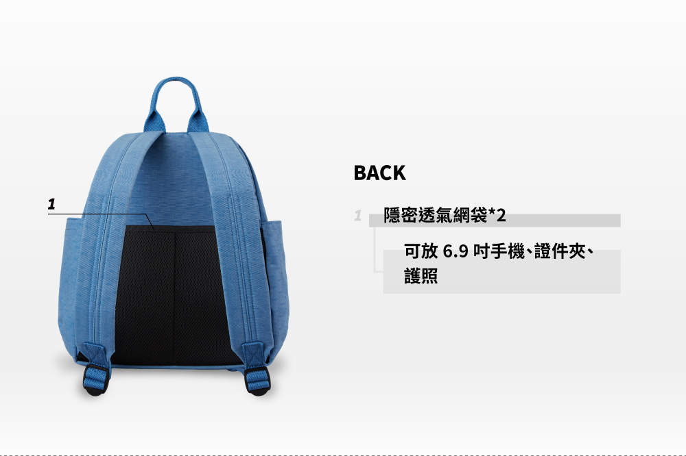▪ 後側隱密透氣網袋,可放錢包手機