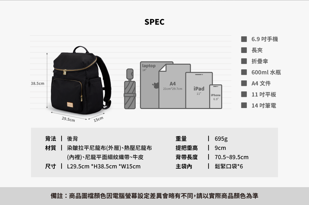 ▪ 獨立14吋筆電隔層,也可放A4文件