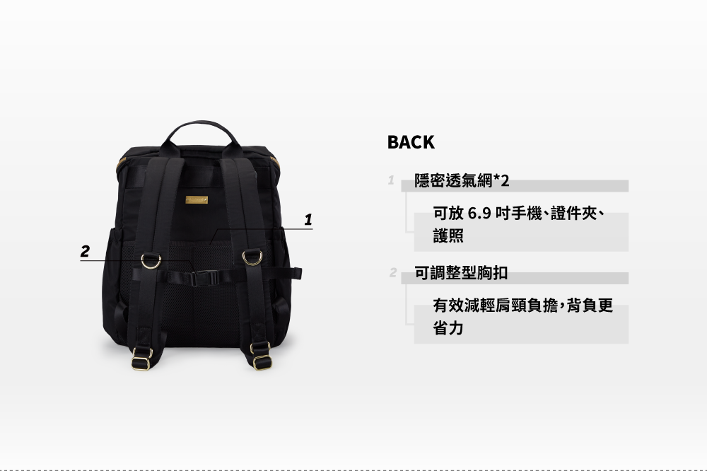 ▪ 獨家開發防潑水尼龍布料