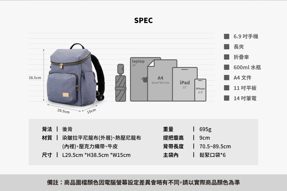 ▪ 獨立14吋筆電隔層,也可放A4文件