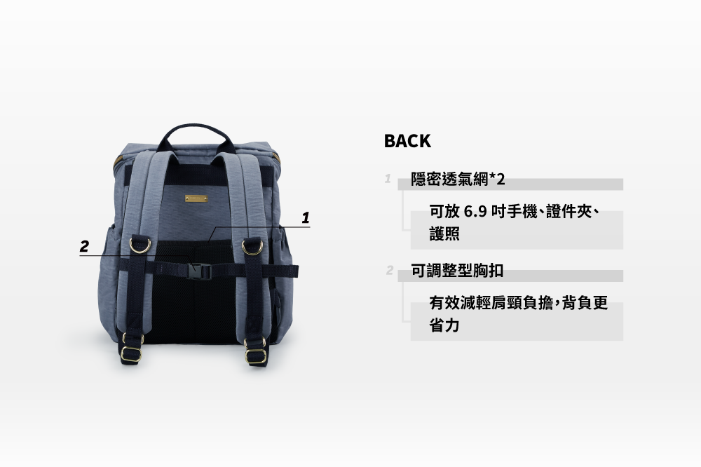 ▪ 減壓止滑背帶附調整型胸扣,減輕肩膀負擔