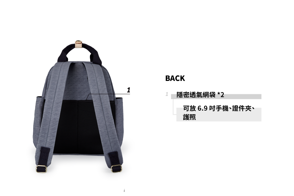 ▪ 後側隱密透氣網袋,可放錢包手機