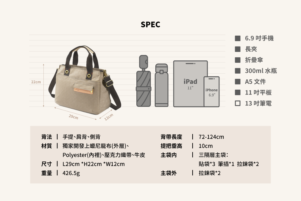 ▪ 內裡採防潑水熱壓尼龍,耐用好清潔