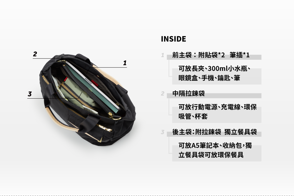 ▪ 內裡採防潑水熱壓尼龍,耐用好清潔