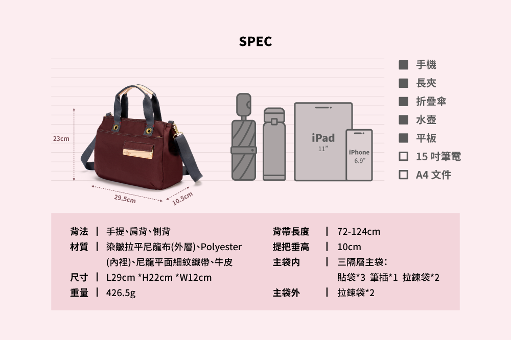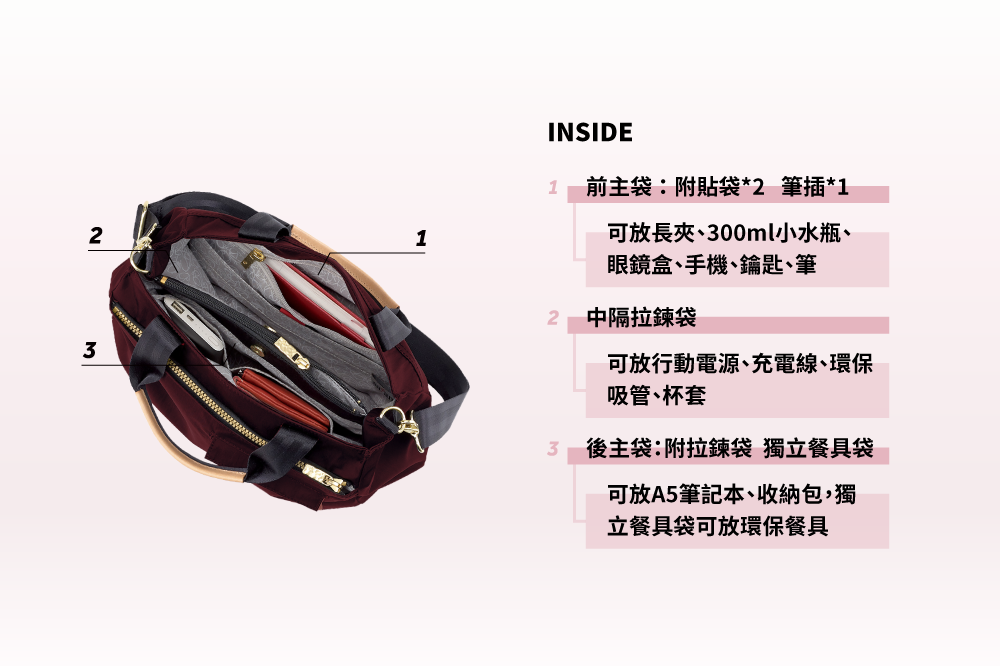 ▪ 內裡採防潑水熱壓尼龍,耐用好清潔