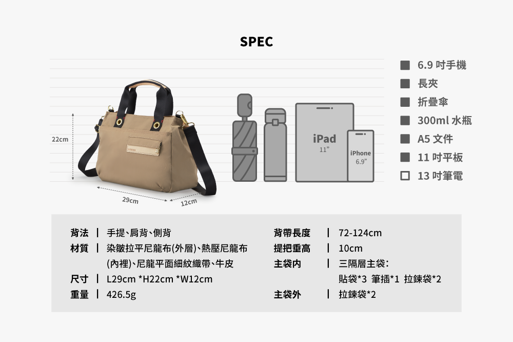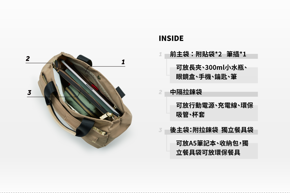 ▪ 內裡採防潑水熱壓尼龍,耐用好清潔