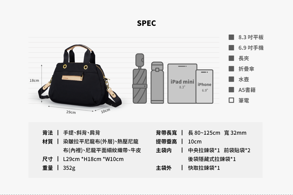 ▪ 內裡採防潑水熱壓尼龍,耐用好清潔