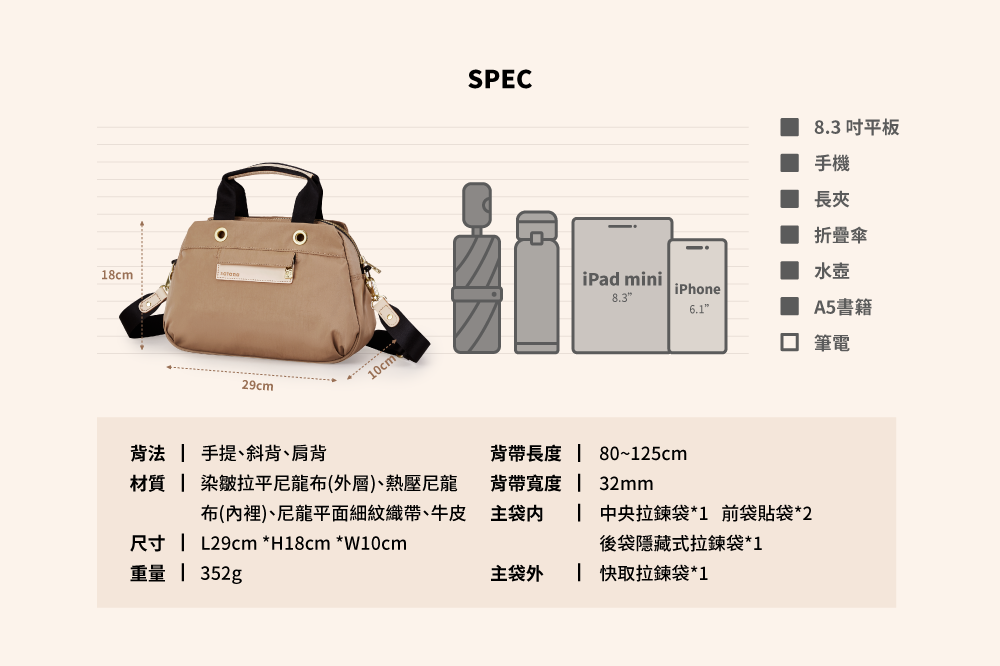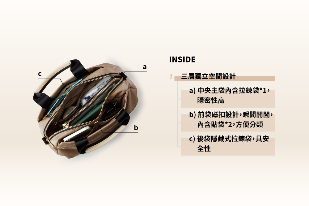 ▪ 內裡採防潑水熱壓尼龍,耐用好清潔