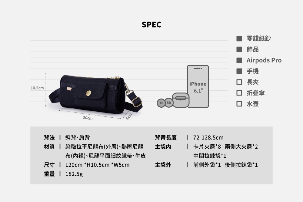 ▪附活動式背帶,可肩/斜背