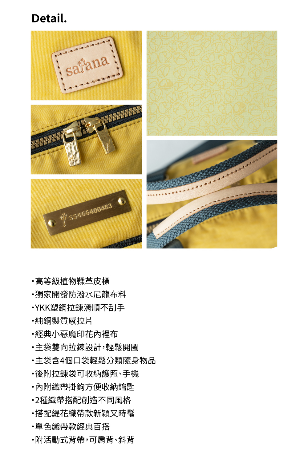 ● 獨家開發防潑水尼龍布料