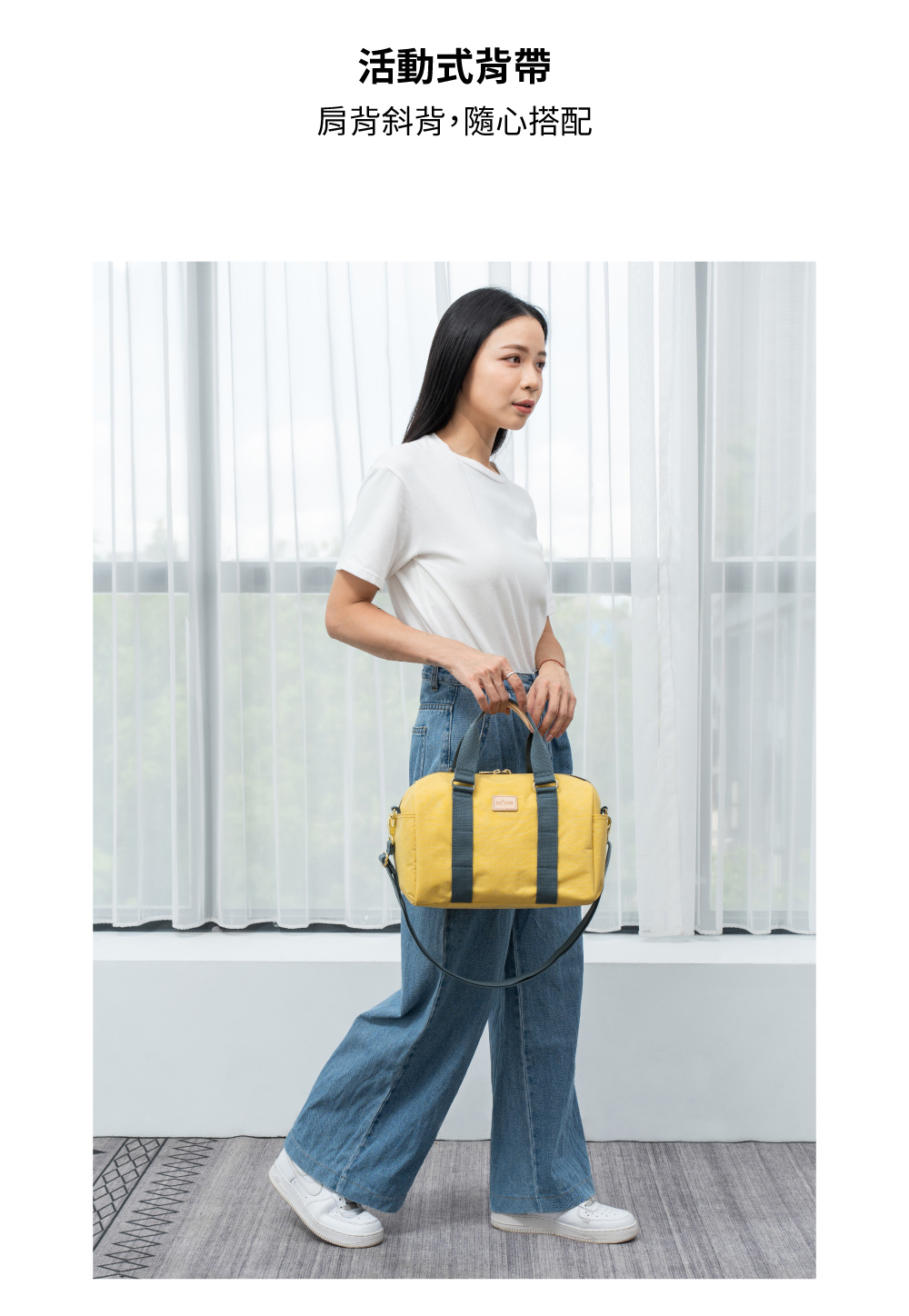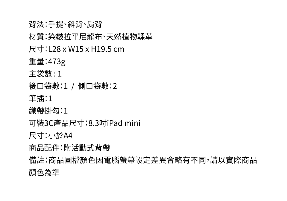 ● 附活動式背帶,可肩背、斜背