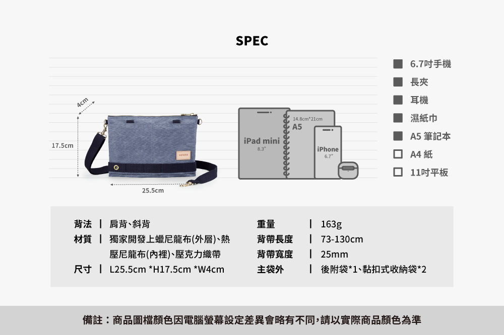 ▪ 附活動式背帶,肩背、斜背輕鬆轉換