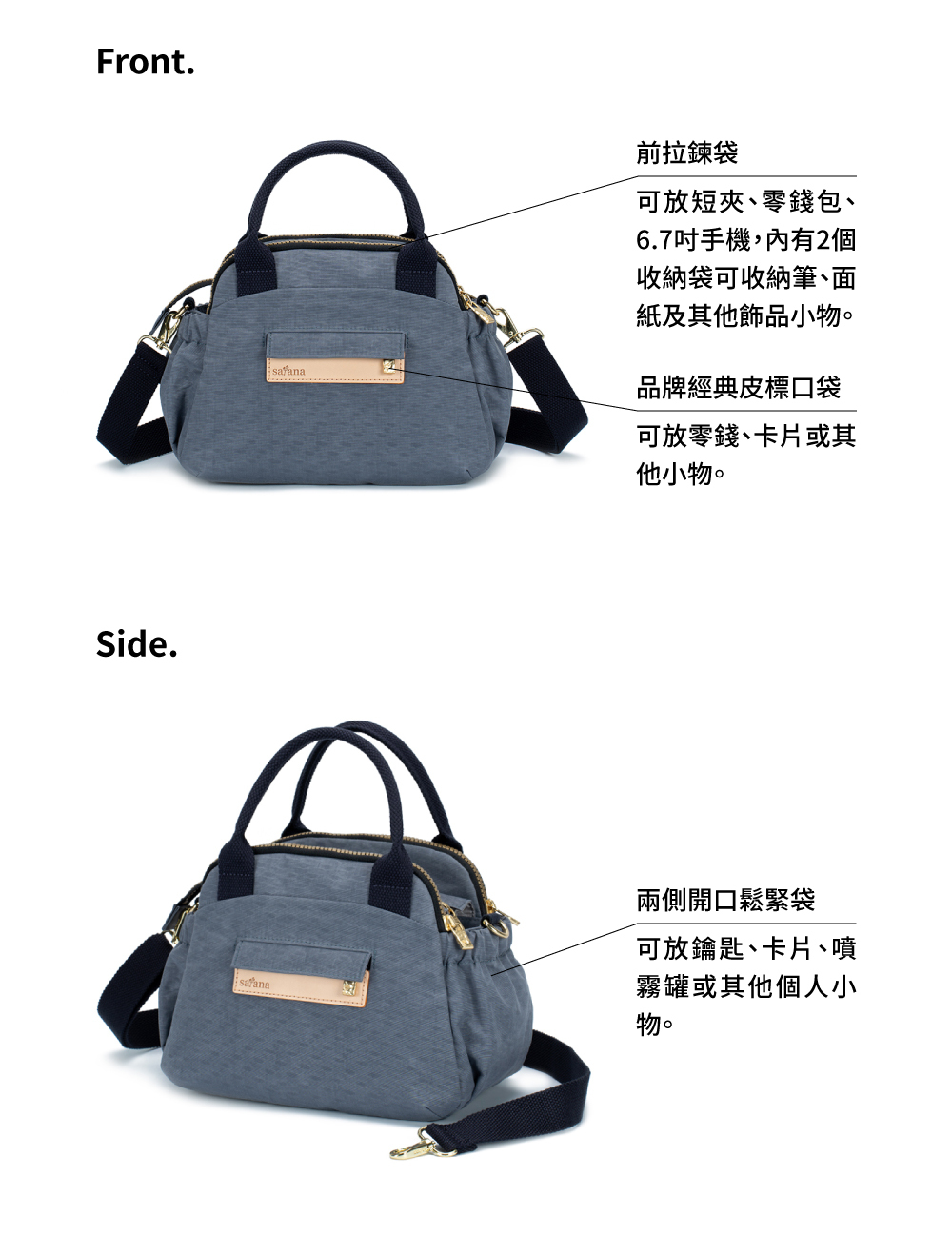 ● 兩側開口鬆緊袋,方便快取