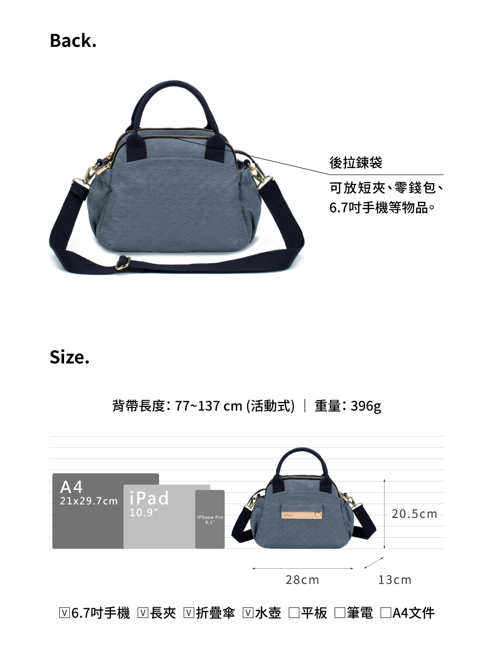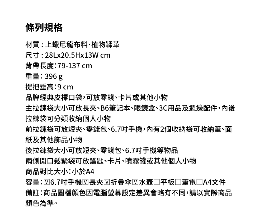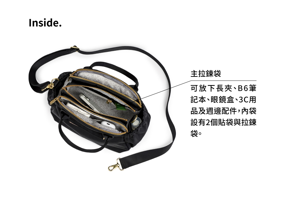 ● 3個拉鍊隔層,分類收納好方便