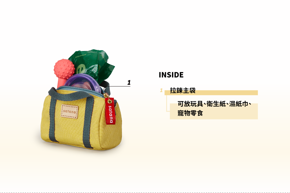 ▪ 主袋可收納寵物零食、撿便袋、錢包、鑰匙等小物