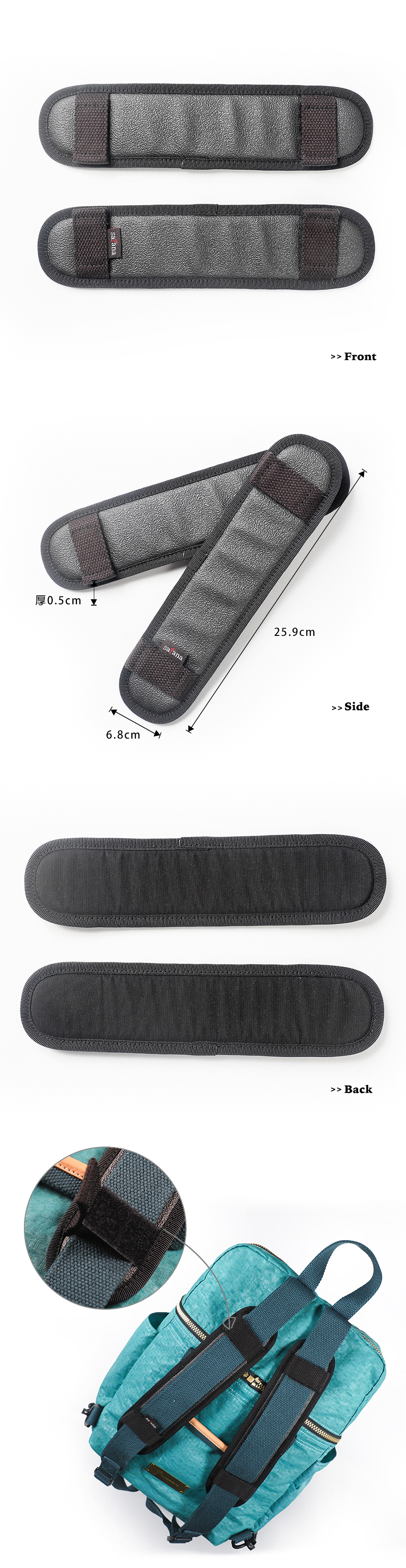專為減輕肩膀壓力所設計的可拆式防滑肩墊片,可有效加大受力面積減低承受重力,