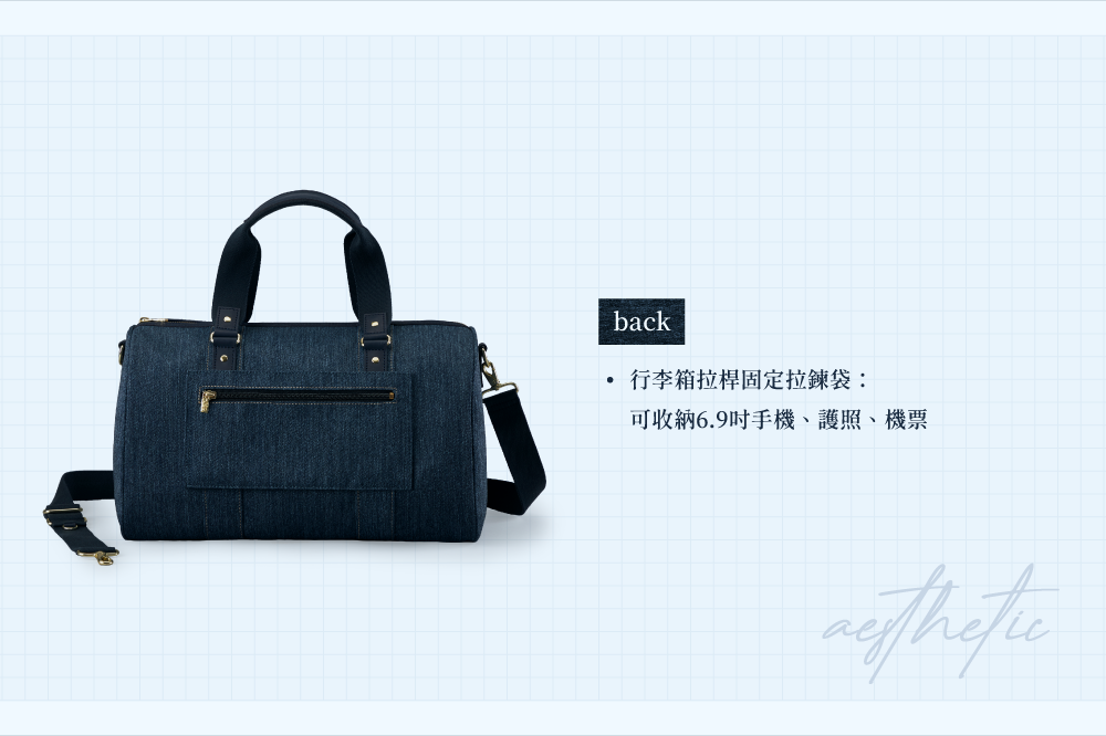 ▪後側附行李箱拉桿固定口袋,可放手機、護照