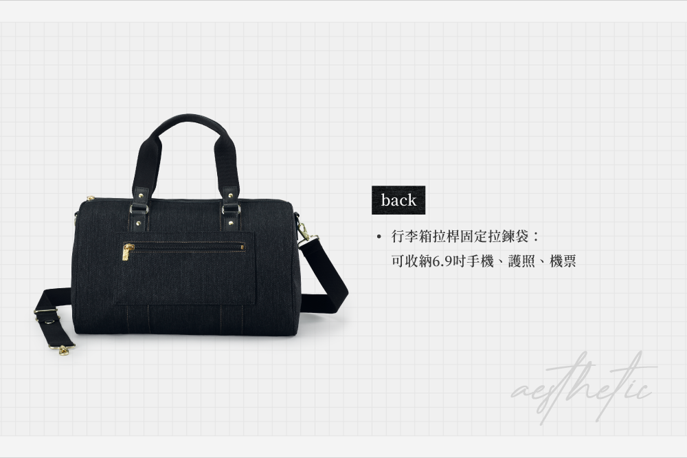 ▪後側附行李箱拉桿固定口袋,可放手機、護照