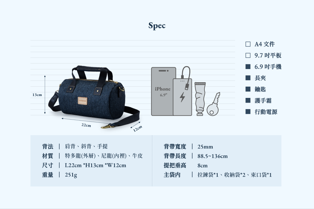 ▪ 重量僅 251g,通勤、出遊皆可輕鬆搭配