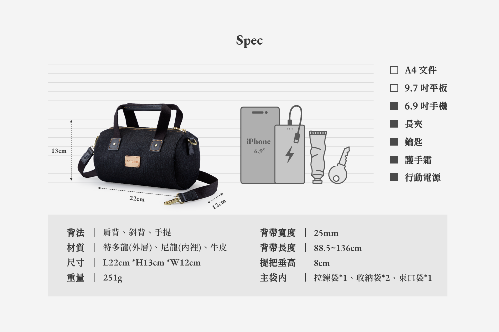 ▪ 重量僅 251g,通勤、出遊皆可輕鬆搭配