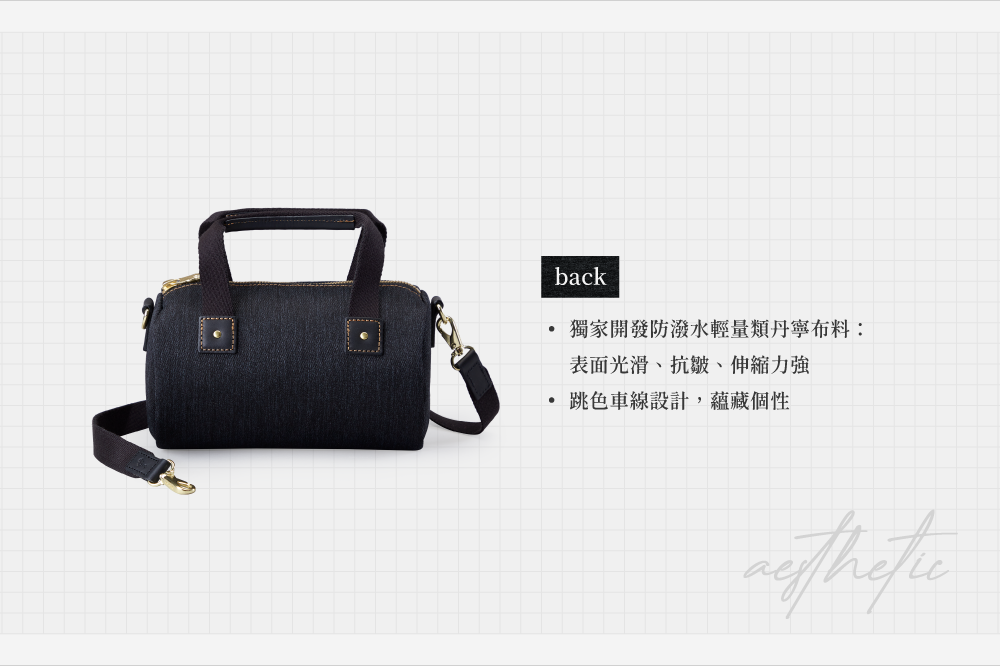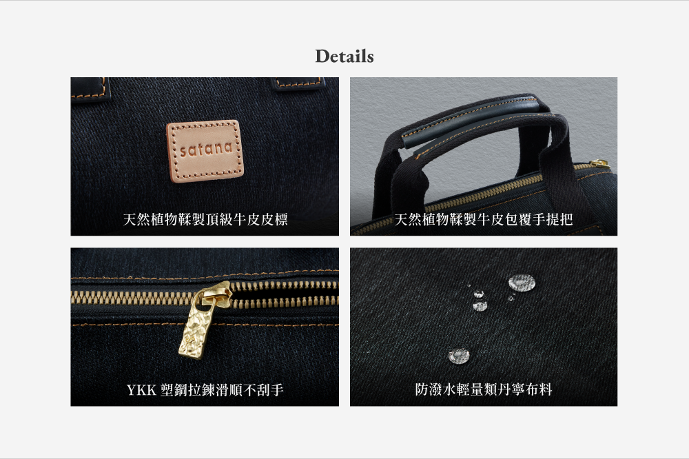 ▪ 獨家開發防潑水輕量類丹寧布料