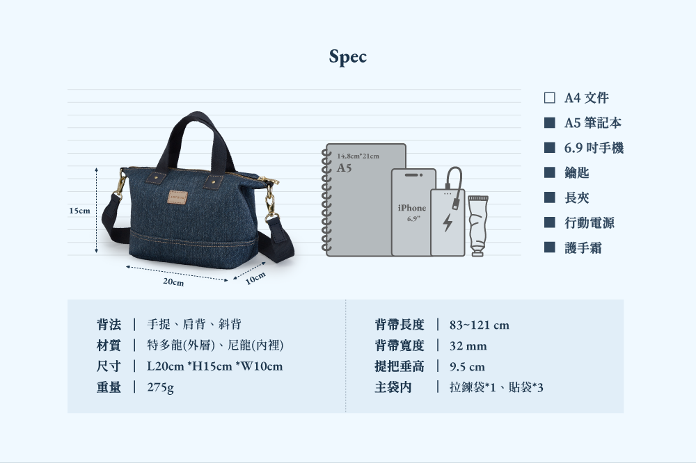 ▪主袋內拉鍊袋*1、貼袋*3,輕鬆分類收納
