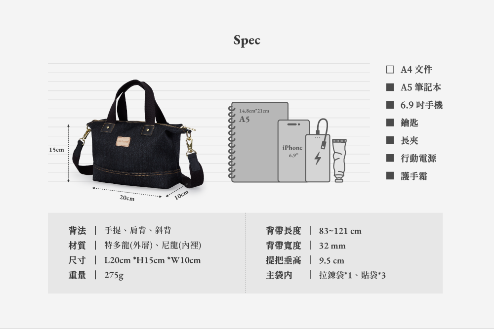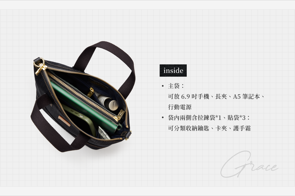 ▪主袋內拉鍊袋*1、貼袋*3,輕鬆分類收納