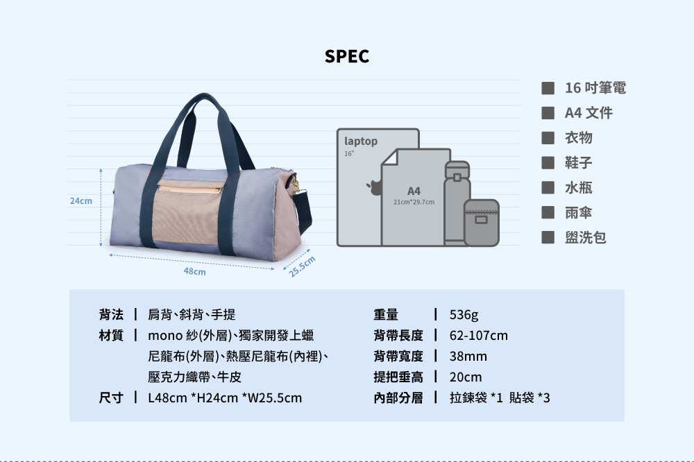 ▪ 30.5L 大容量,輕鬆收納3天2夜行李