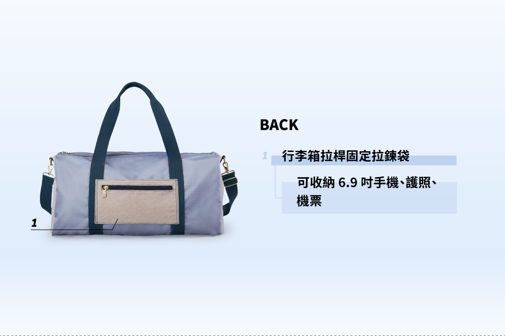 ▪ 貼心設計拉桿固定拉鍊袋,放護照、手機剛剛好