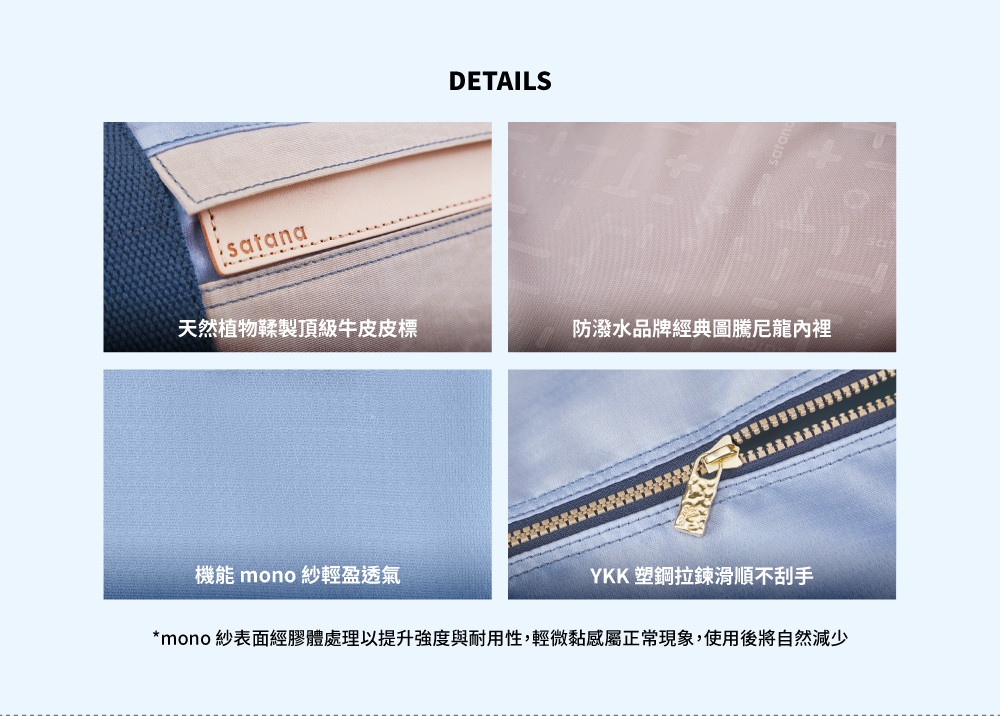 ▪ 機能 mono 紗材質,輕盈透氣又柔韌耐用