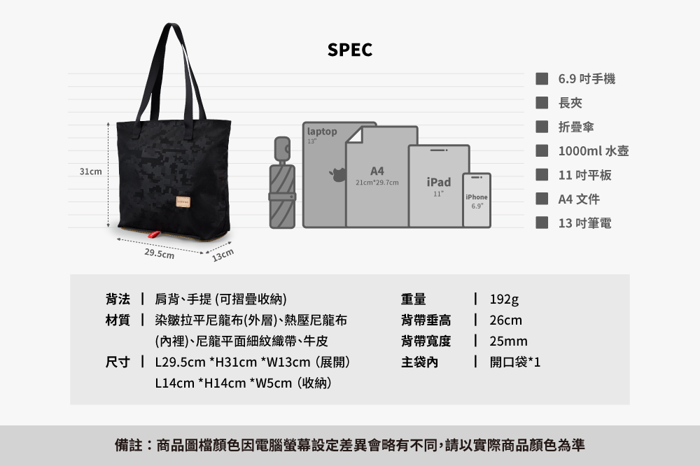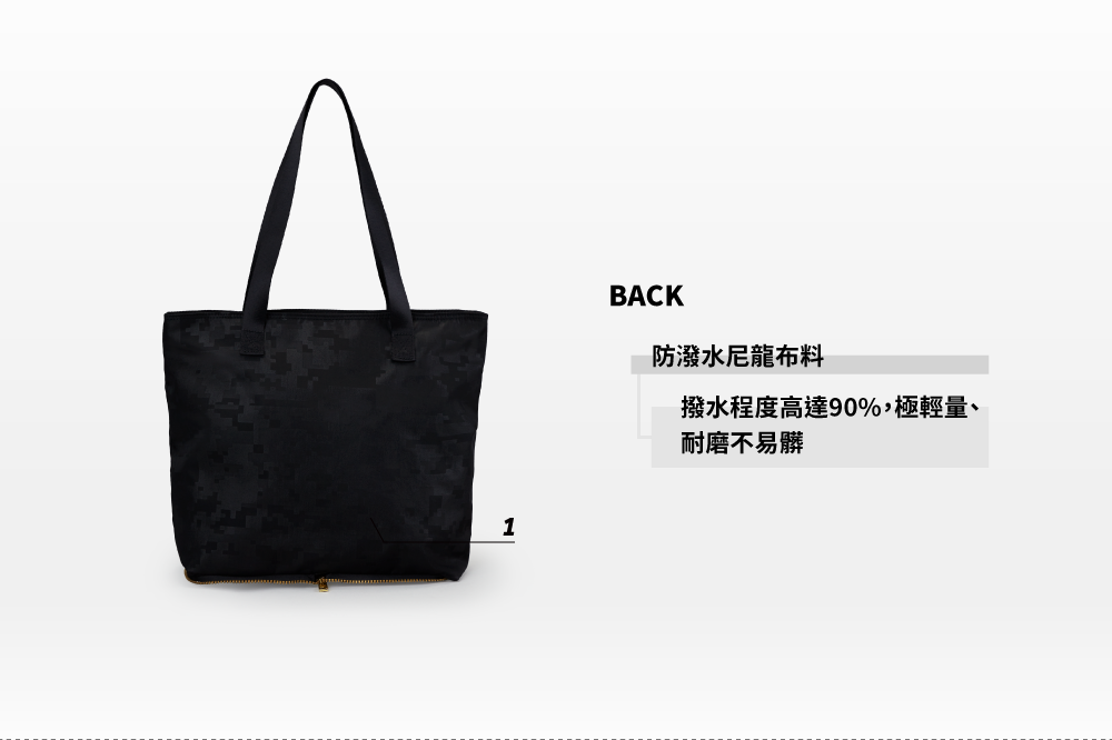 ▪ 獨家開發防潑水尼龍布料