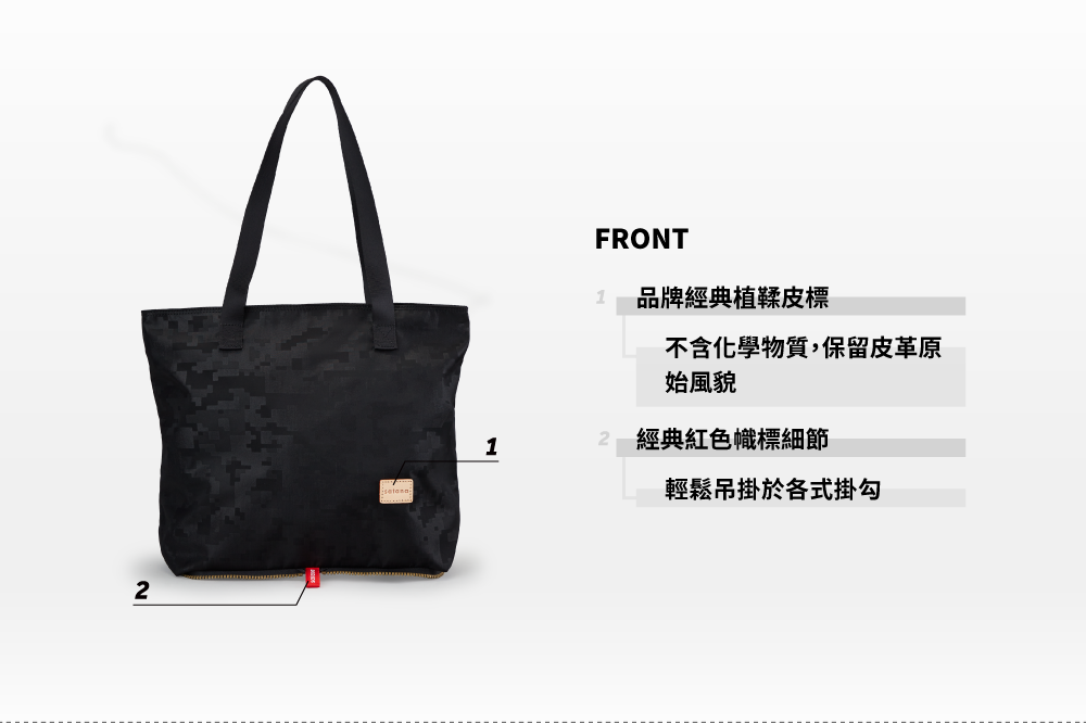 ▪ 外側品牌織標可作吊掛使用,便利有型