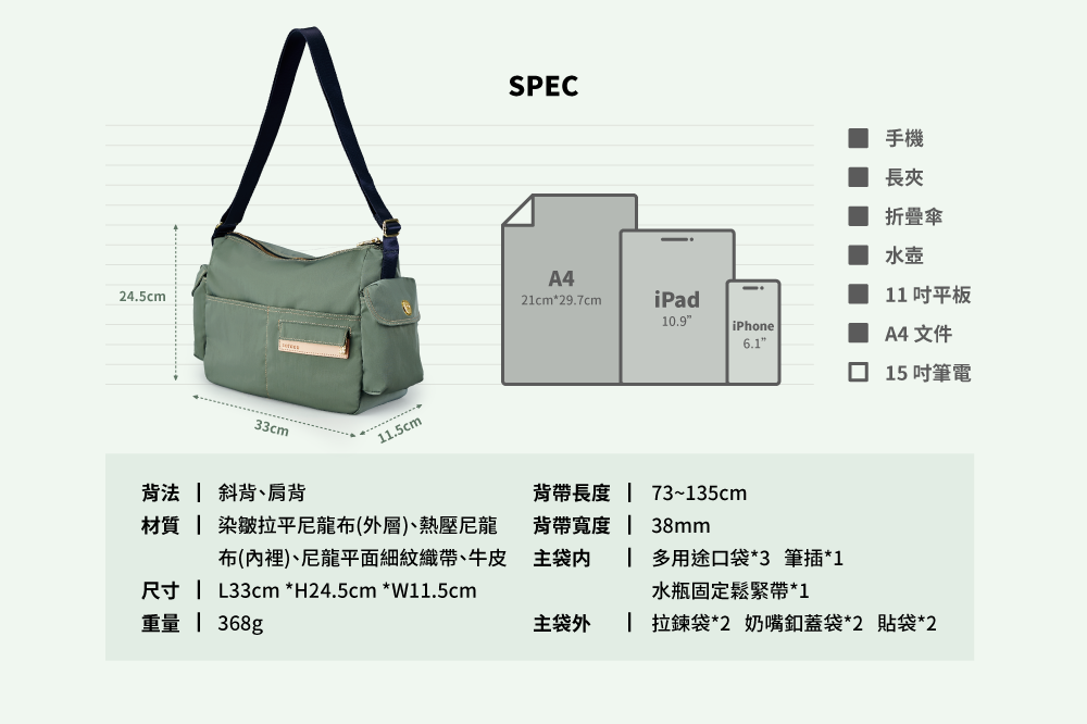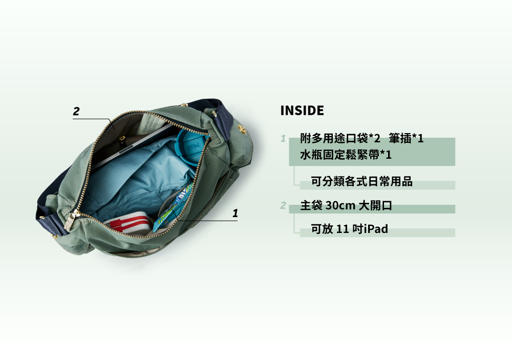 ▪ 主袋30cm大開口,可放11吋iPad