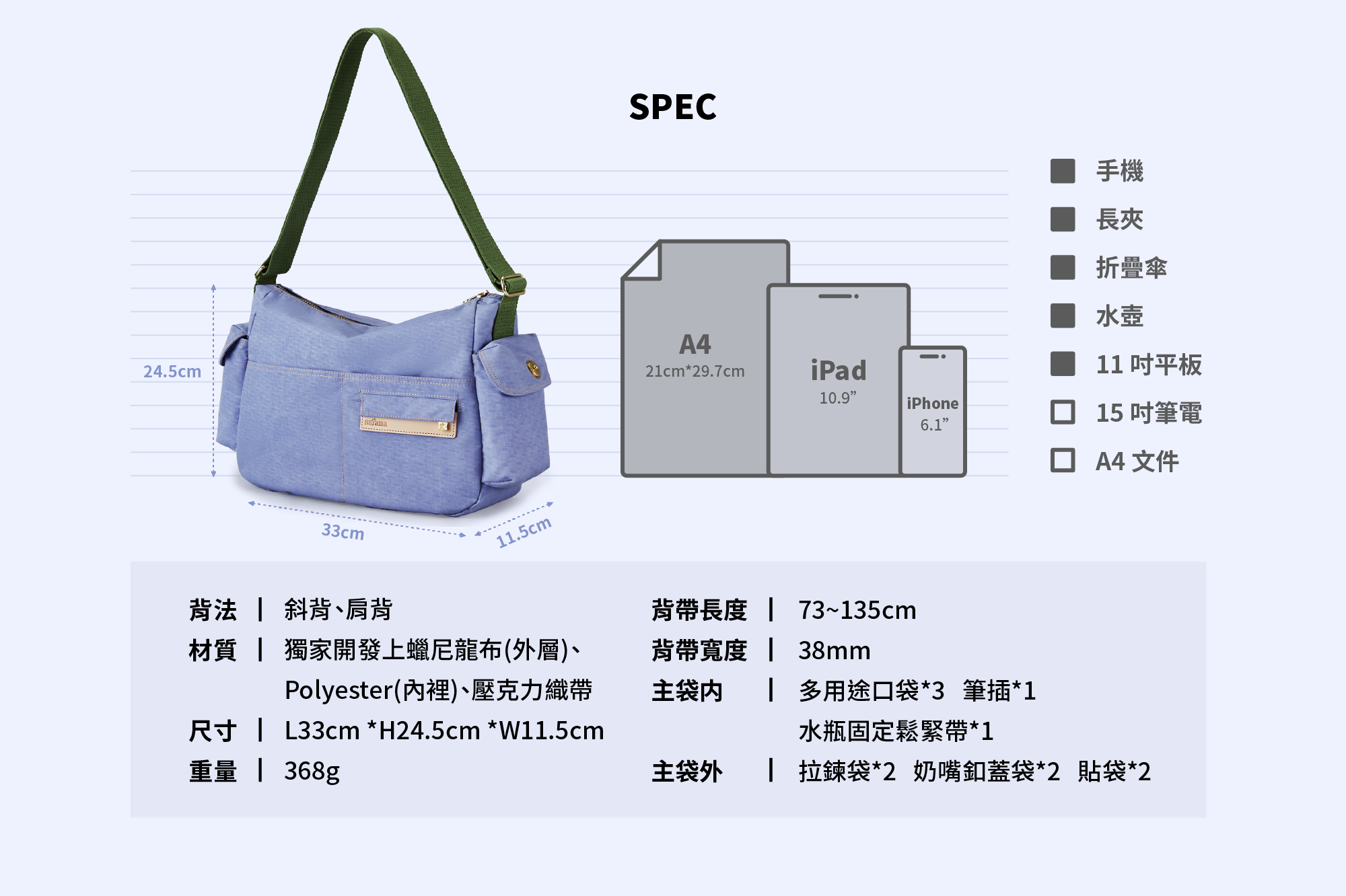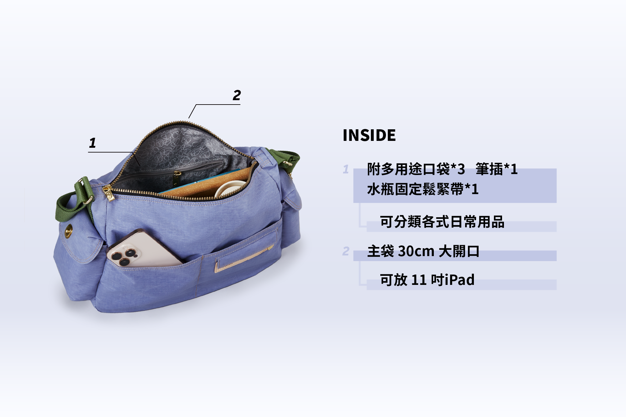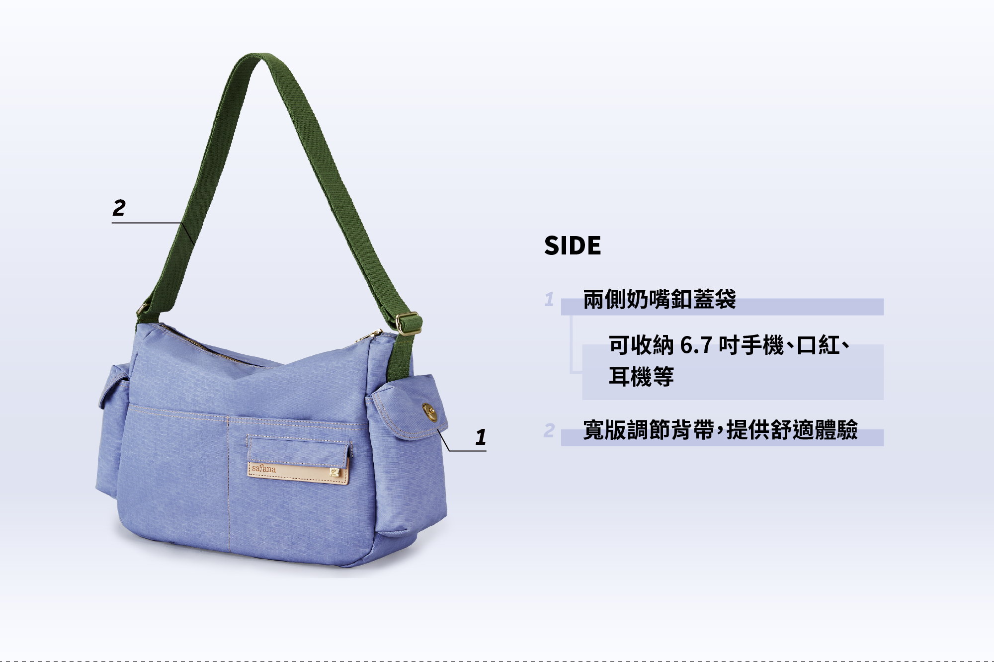 ▪兩側奶嘴釦蓋袋,可放6.7吋手機
