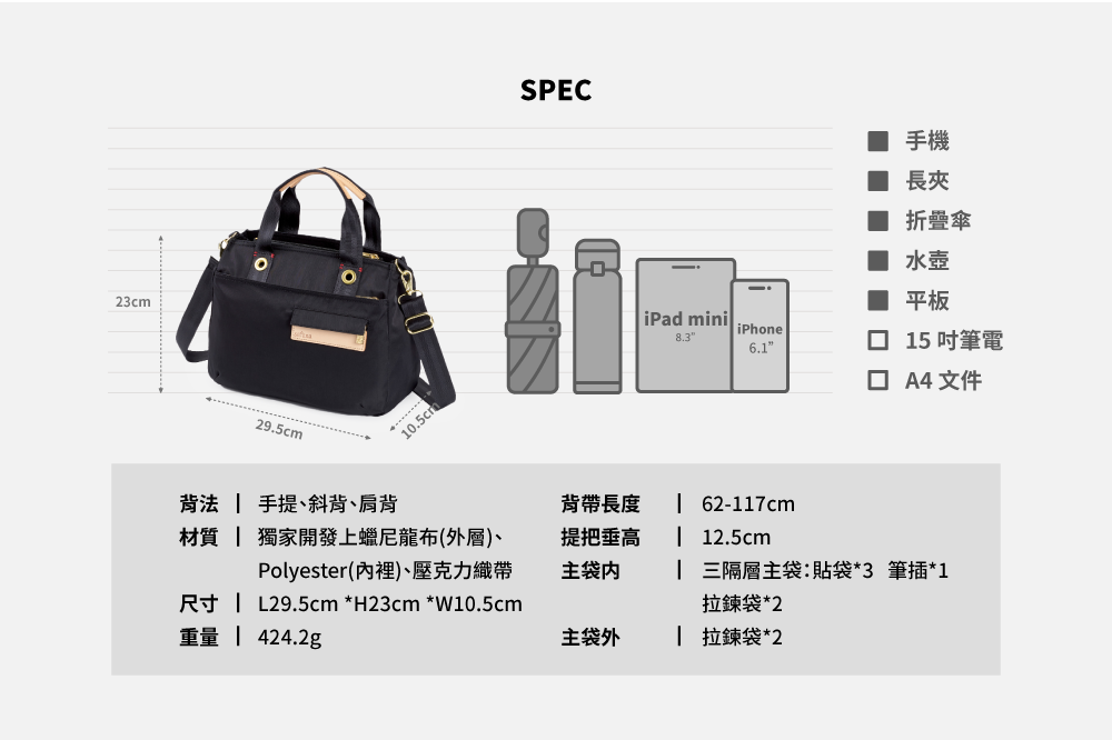 ▪可放B5文件、11吋平板
