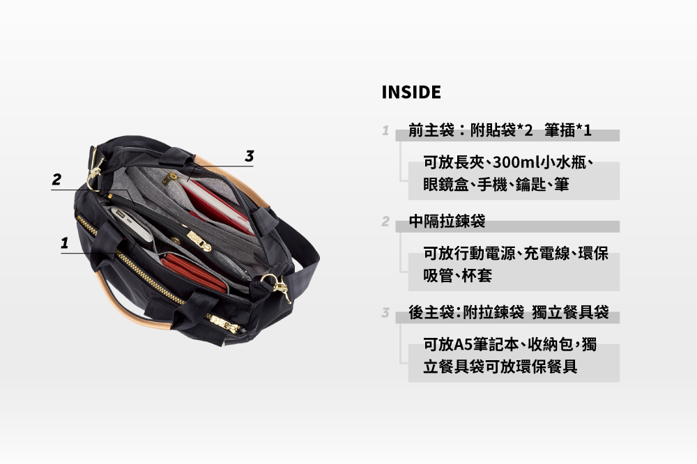 ▪三隔層主袋空間,方便分類收納
