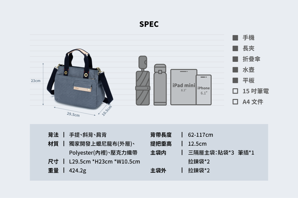 ▪可放B5文件、11吋平板