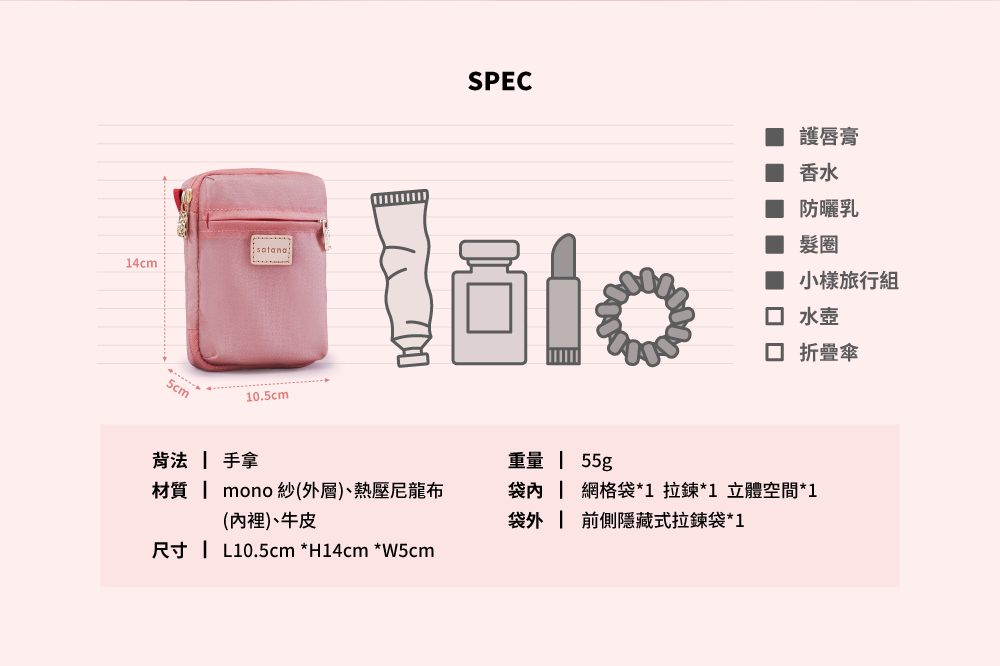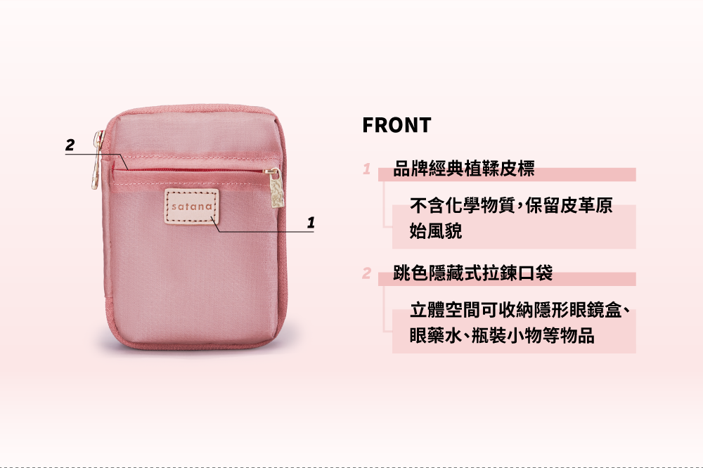 ▪ 前側隱藏式拉鍊袋,獨立收納空間