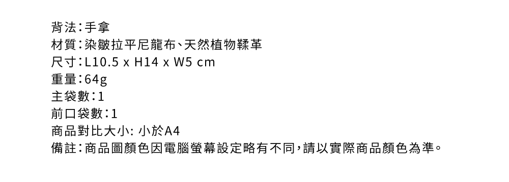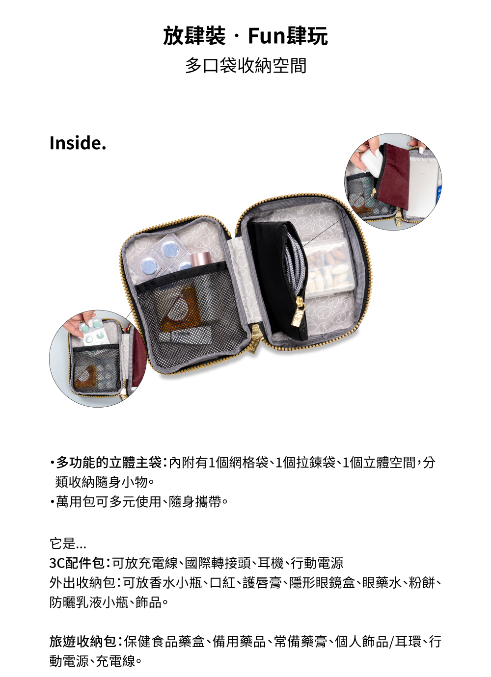 ● 內附1個網格袋、1個拉鍊袋、1個立體空間