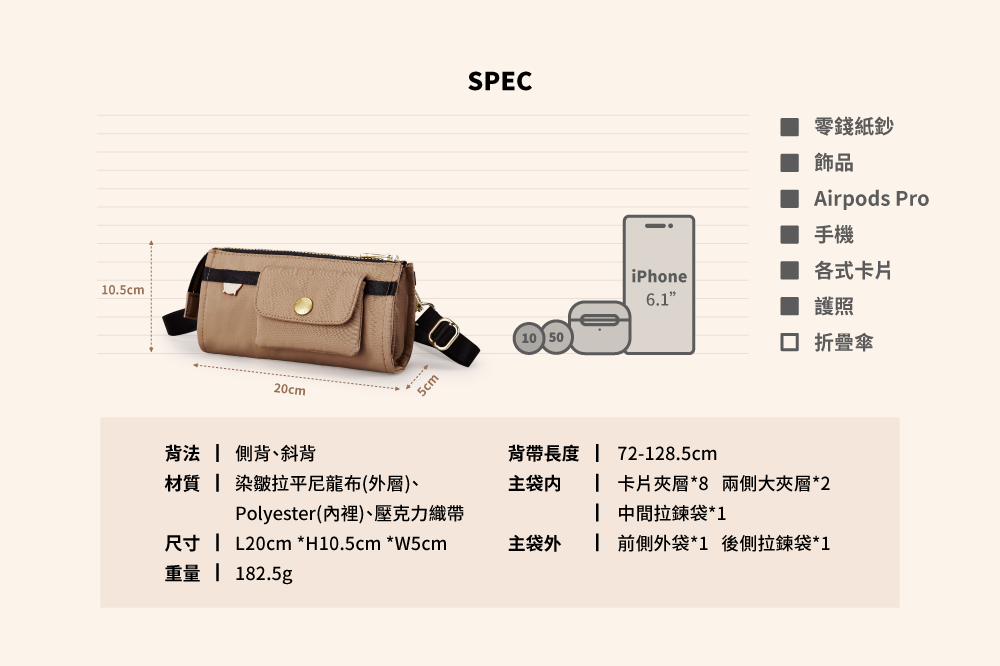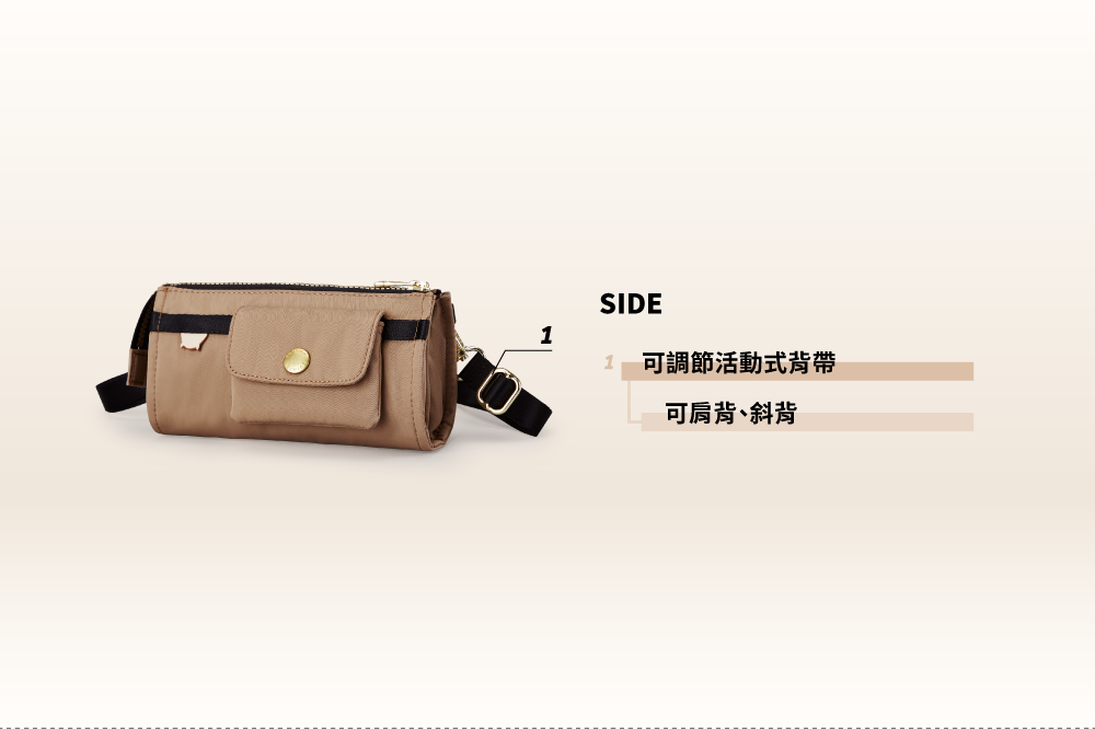 ▪ 附活動式背帶,可肩/斜背