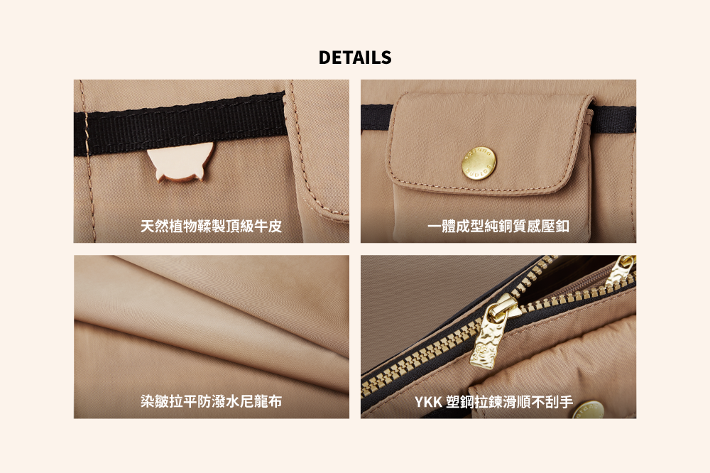▪ 訂製YKK塑鋼拉鍊,滑順不刮手