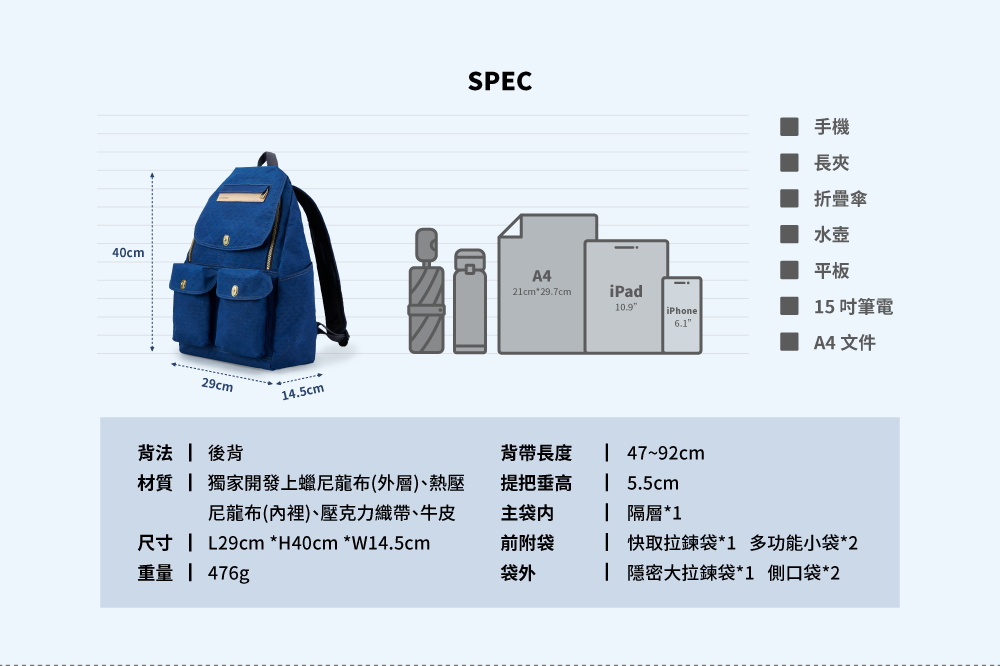 ▪可放A4文件、14吋筆電