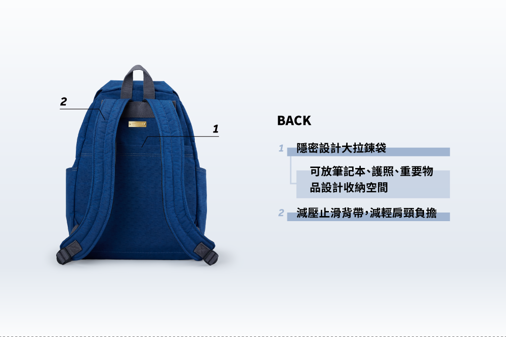 ▪後側隱密大拉鍊袋,可放重要物品